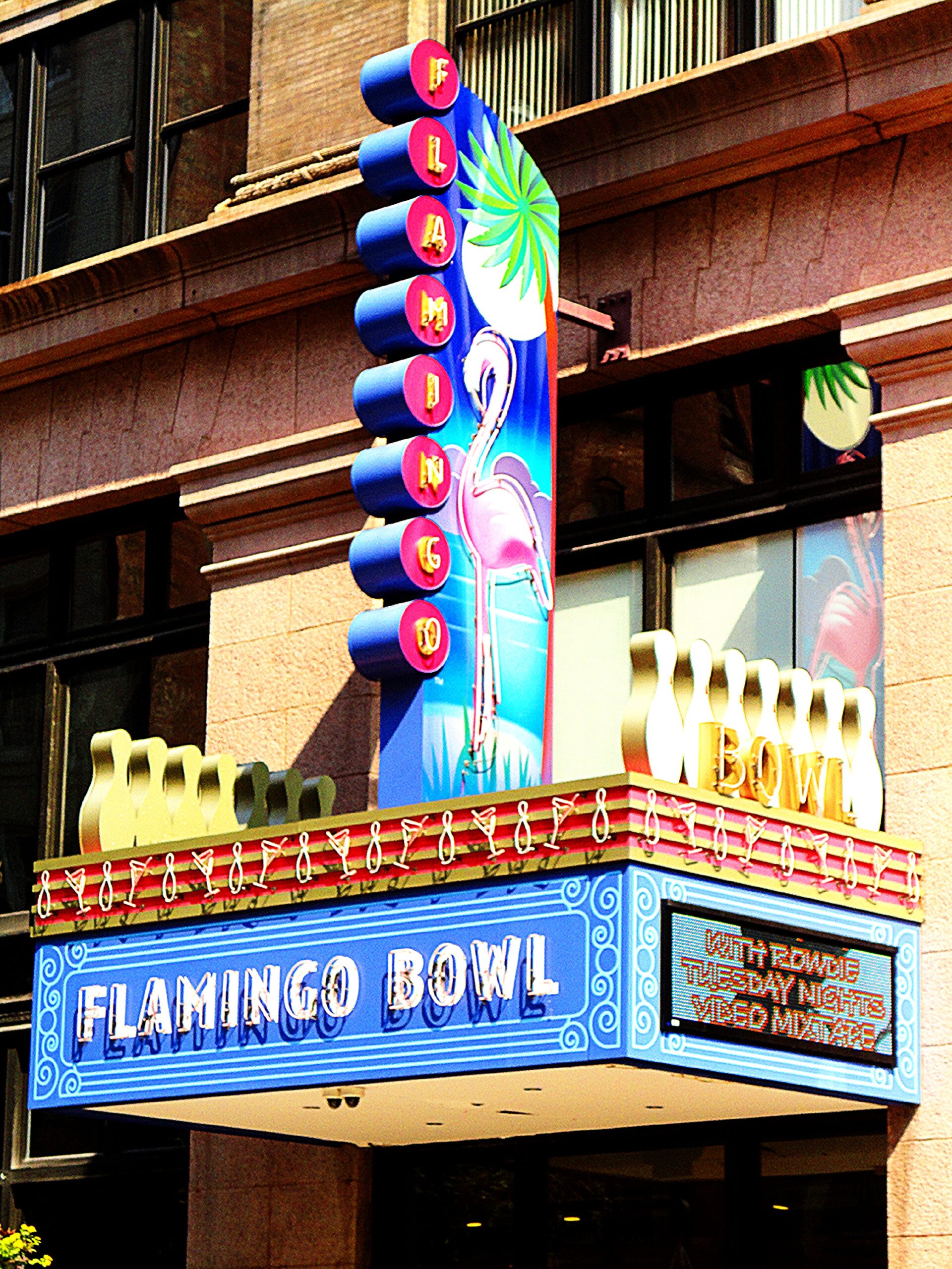 In 2012, Main Street directors and volunteers arrived at the boutique bowling alley, Flamingo Bowl, located on Washington Avenue in downtown St. Louis, for MMSC’s Evening Opening Reception at the“Get Plugged In Downtown Conference.” Walking into the renowned Art Deco decor and vibrant bowling lounge, sets the mood just right for networking and fun. Grabbing their bowling shoes, delicious food, and signature cocktails, conference attendees networked in the cozy lounge areas, around the pool tables, while bowling on the state-of-the-art bowling lanes. It is clear why, since opening in 2007, the Flamingo Bowl has been a vital part of downtown St. Louis, playing a significant role in the revitalization of the downtown area through its support of the local community and attraction of outside visitors. Today, Flamingo Bowl remains a cherished destination that brings people together in the heart of downtown St. Louis.