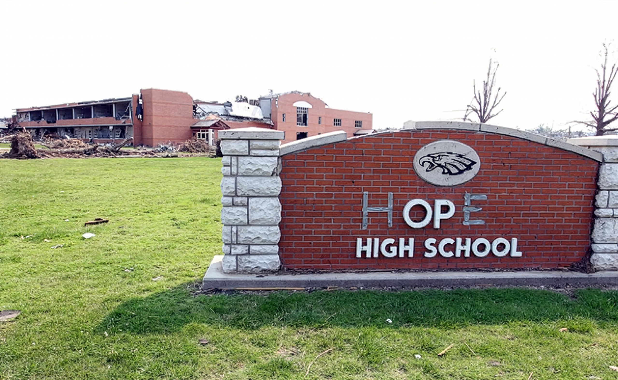 Even after the deadliest tornado in the history of Missouri, there is a glimmer of hope. This Joplin High School sign shows minimal damage, considering the 200 mph wind speeds that it withstood. Just a few strips of duct tape has replaced four letters of the town's name showing that no matter what Joplin has endured, there is hope that we can rebuild from the devastating storm.