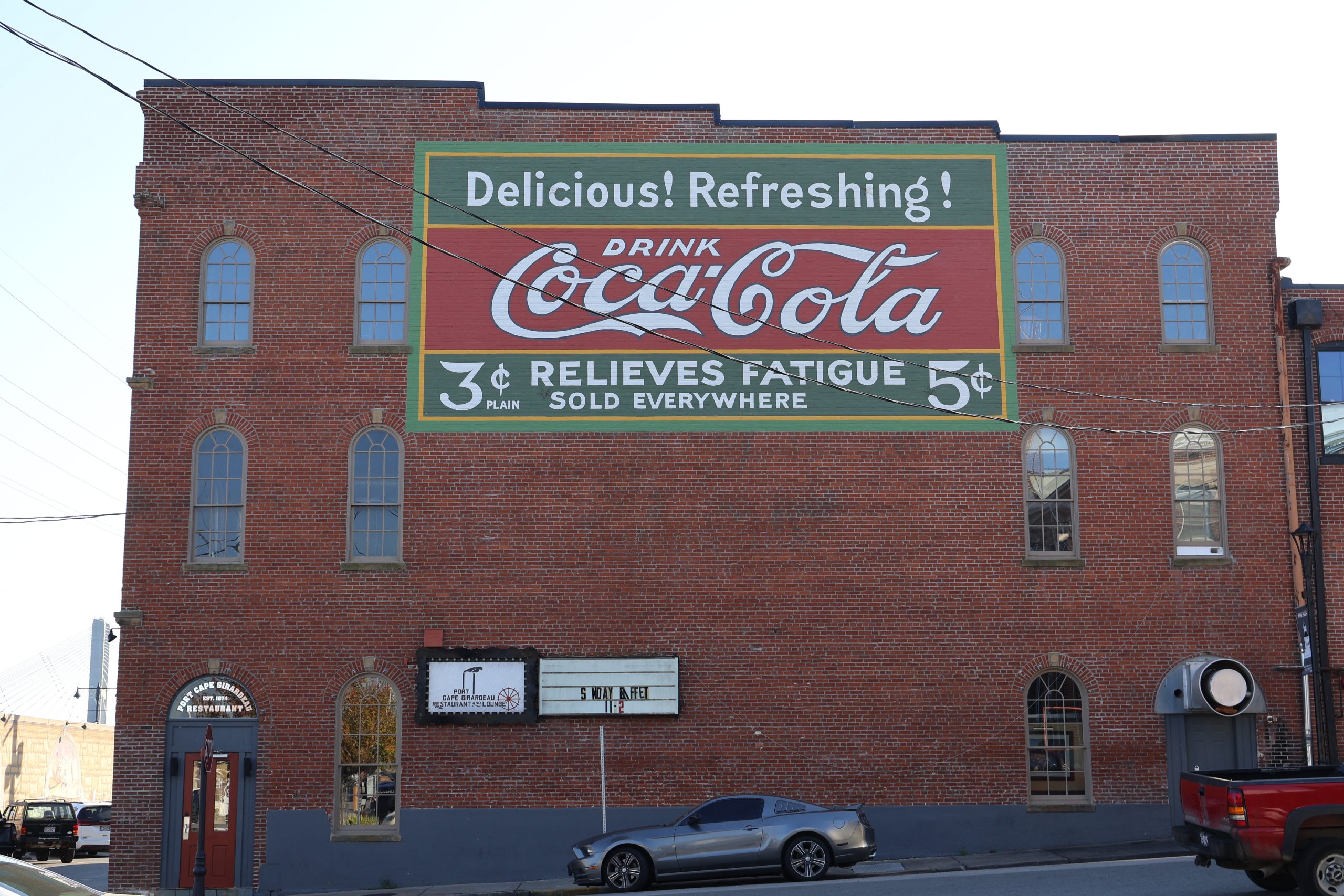 Since 1940, this advertisement for Coca-Cola has been a part of downtown Cape Girardeau. It was rehabbed in 1978, and more recently in 2023 due to a preservation effort by Old Town Cape. The sign serves as a look into the economic history of downtown Cape Girardeau, seeing that the popular soda is quite a bit more than five cents now.
